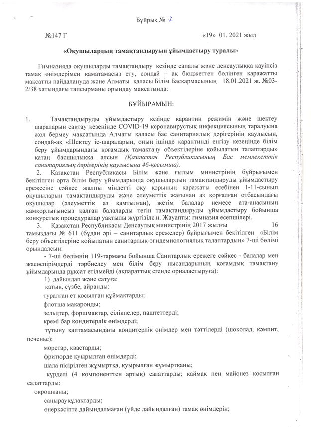 21 қаңтар 2021 0 1 2 3 4 5 Оқушылардың тамақтануын ұйымдастыру туралы бұйрық Осы беттің QR-коды:QR-код этой страницы: